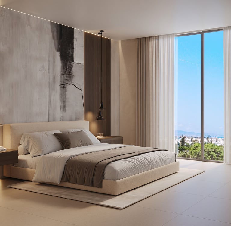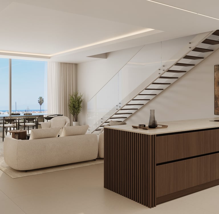 Step inside, and the atmosphere shifts to one of calm luxury. The interiors at Alcántara del Mar are a masterclass in understated refinement open, light-filled spaces where natural textures meet elegant detailing. The interior design has been created by the renowned Gunni & Trentino, bringing a distinctive sense of balance, craftsmanship, and timeless elegance. Neutral palettes are enhanced by warm woods, fine stone, and soft fabrics, creating homes that feel both elevated and deeply inviting. Every element has been designed to celebrate light, comfort, and effortless Mediterranean living. For those seeking a fully curated experience, our optional Furniture Packed program allows our design team to furnish your home to perfection, combining style and functionality seamlessly.