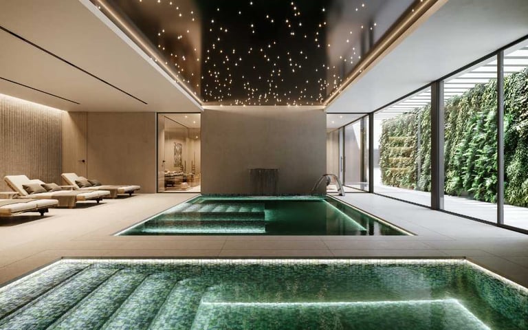 The project also enjoys easy access to the tranquil beaches of Bahia Dorada and Playa de la Galera in Estepona, which stand out for the colors reflected in their waters, with shades ranging from the darkest green to the lightest blue. The Place Alacazaba offers exclusive facilities to enhance the well-being and comfort of its residents. These include a state-of-the-art spa with a variety of treatments, a modern sauna for relaxation and detoxification, and a gym equipped with advanced technology.